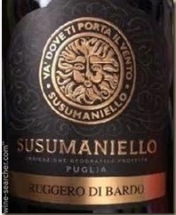 The last one is a bit of a flier. This one is a dry red out of Puglia, Italy (the heel of the boot). The grape variety is Susumaniello (sue sue man yell o). I had to look this one up as none of my wine books have this grape listed.