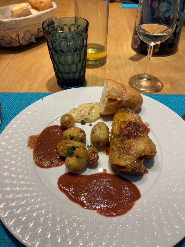 Chicken with a Bordelaise and Sweet and Sour sauce