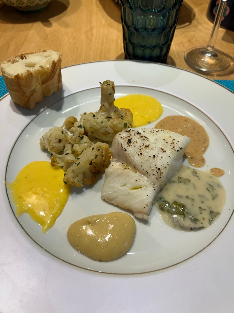 Cod with hollandaise, tartar, sorrel, maltaise sauces