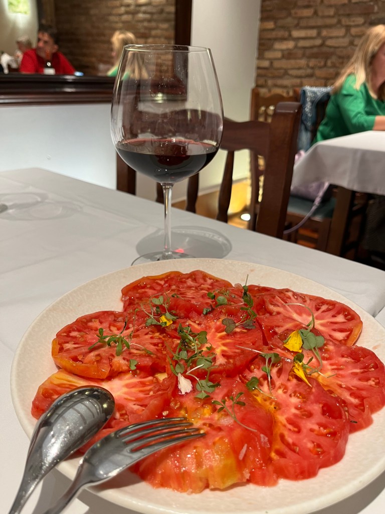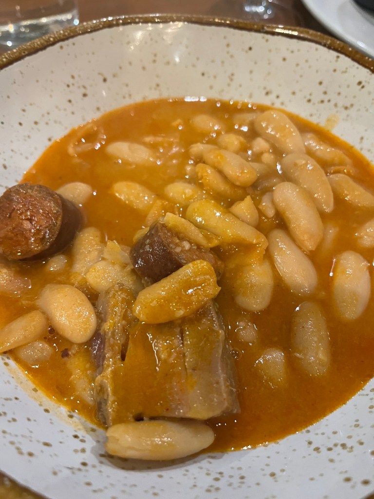 A lot has happened since my last post. We left Segovia and headed for Burgos for a one night stay. Once again, parking the Tesla was nerve racking. Burgos was interesting and offered some nice choices for food. Wine was very inexpensive at €2.50 – €5 a glass, most were actually pretty good. The dish below is called Fabada. It’s a traditional Spanish dish with Faba beans, chucks of pork belly, chorizo, and blood sausage. Yes, Annie ate everything except the blood sausage. We paired it with a very nice Rueda blend of Tempranillo (they call it Tinto Fino locally), Cabernet and Merlot