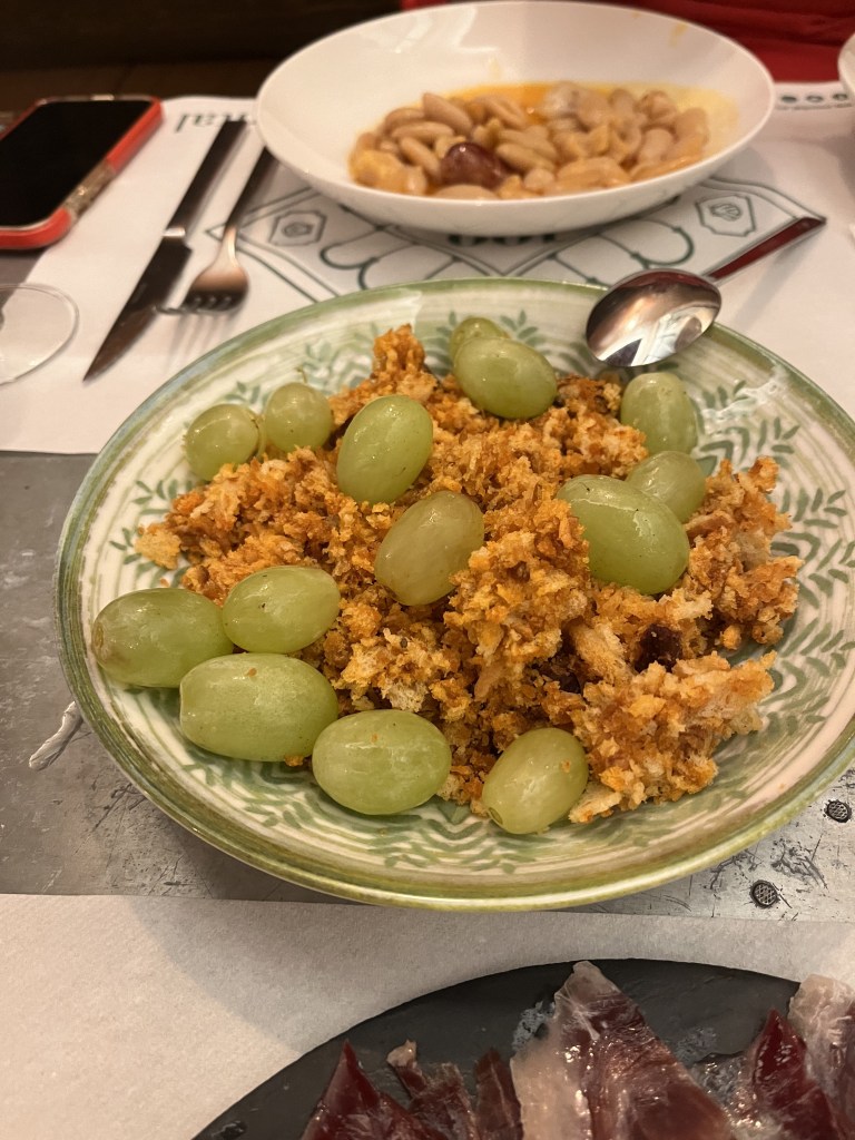 Odd dish but apparently it is a local favorite – bread crumbs and grapes. It has bits of chorizo to add a little smokiness.