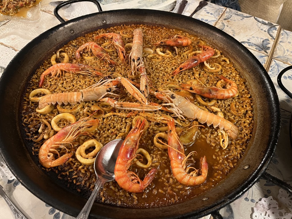 The one on the top is a seafood paella. The one on the bottom is duck but it is not a paella but rather just a rice dish as it has no tradition. Everyone seemed to like the duck (non-paella – rice dish) the best.